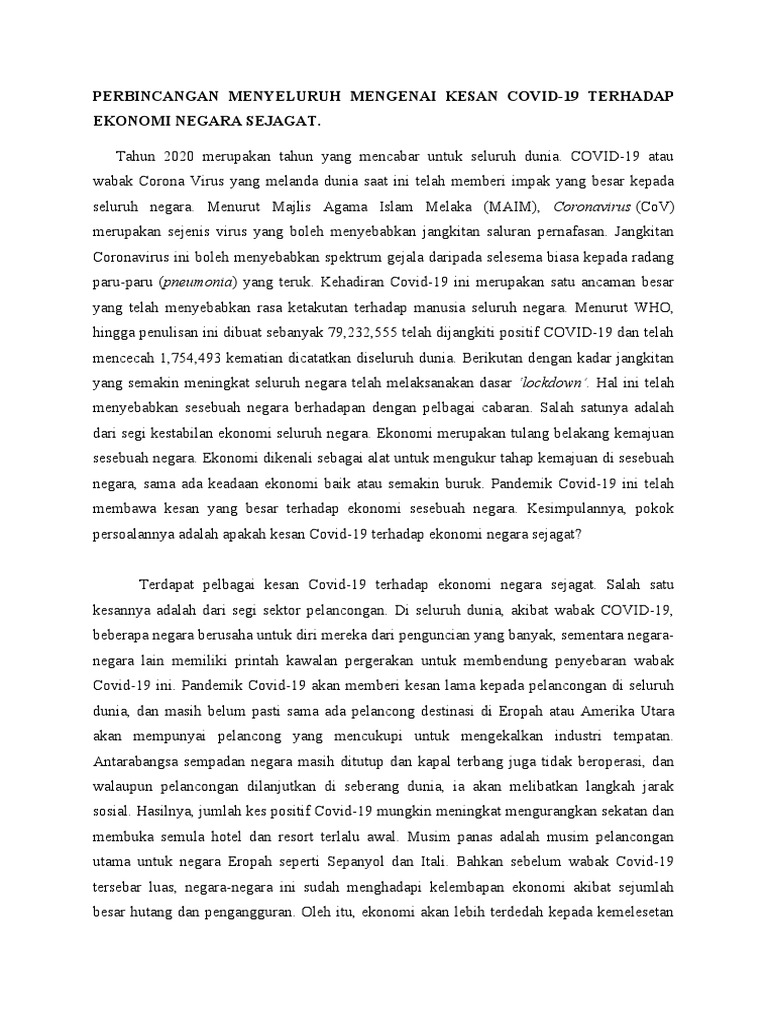 Kesan covid 19 terhadap pelancongan di malaysia. Lebih ramai wanita terkesan akibat COVID-19 - Nancy. Peneraju industri pelancongan di Langkawi perlu bersedia dalam menghadapi beberapa perubahan trend khususnya selepas COVID-19 kata Ketua Pegawai Eksekutif Lembaga Kemajuan Langkawi LADA Dr Hezri Adnan. Industri pelancongan rugi lebih RM9 bilion.