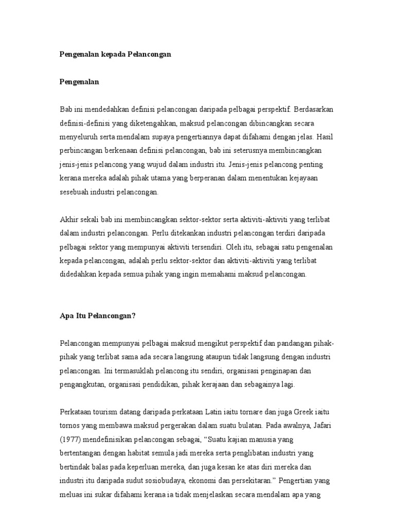 Pelancongan merupakan suatu bidang pelaburan bijak yang dapat memacu pertumbuhan industri-industri lain yang berkaitan. F Perkataan tourism datang daripada. Tourism Malaysia pada hari ini telah mengadakan satu sesi sidang media bersama Jabatan Perangkaan Malaysia bagi membentangkan prestasi pelancongan domestik bagi tahun 2018.