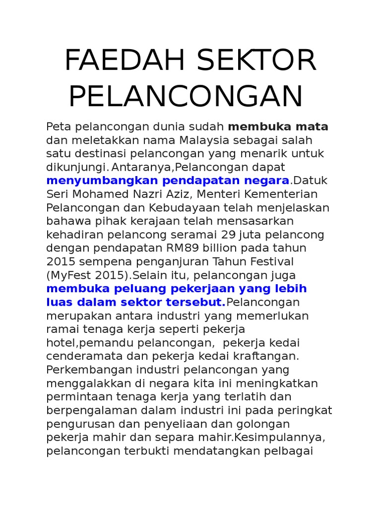 Ulasan Faedah Sektor Pelancongan Pdf
