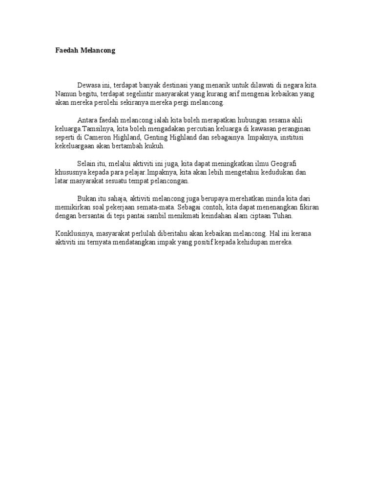 Faedah Melancong Dalam Negara Pdf