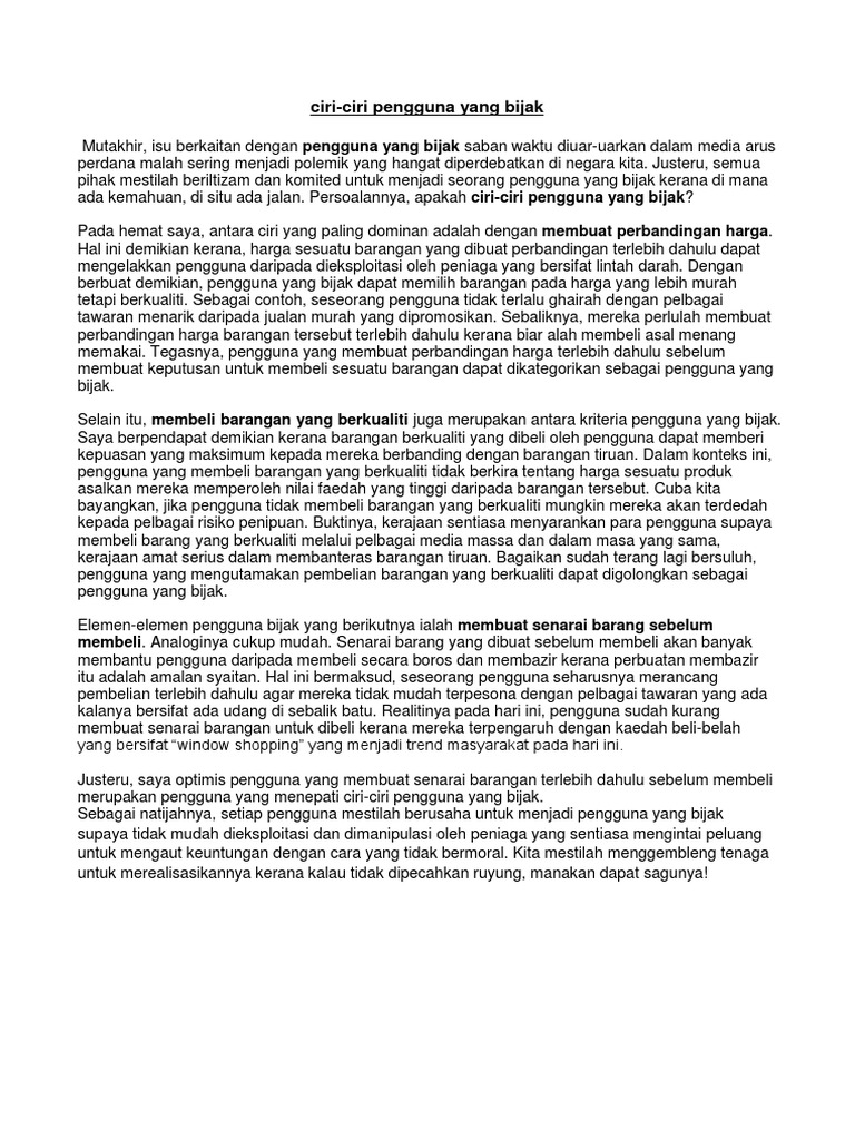 Karangan Spm Ciri Ciri Pengguna Yang Bijak Pdf