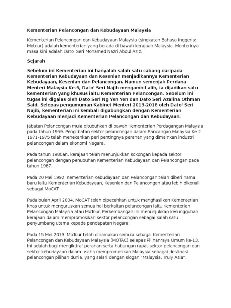 Kementerian Pelancongan Dan Kebudayaan Malaysia Pdf