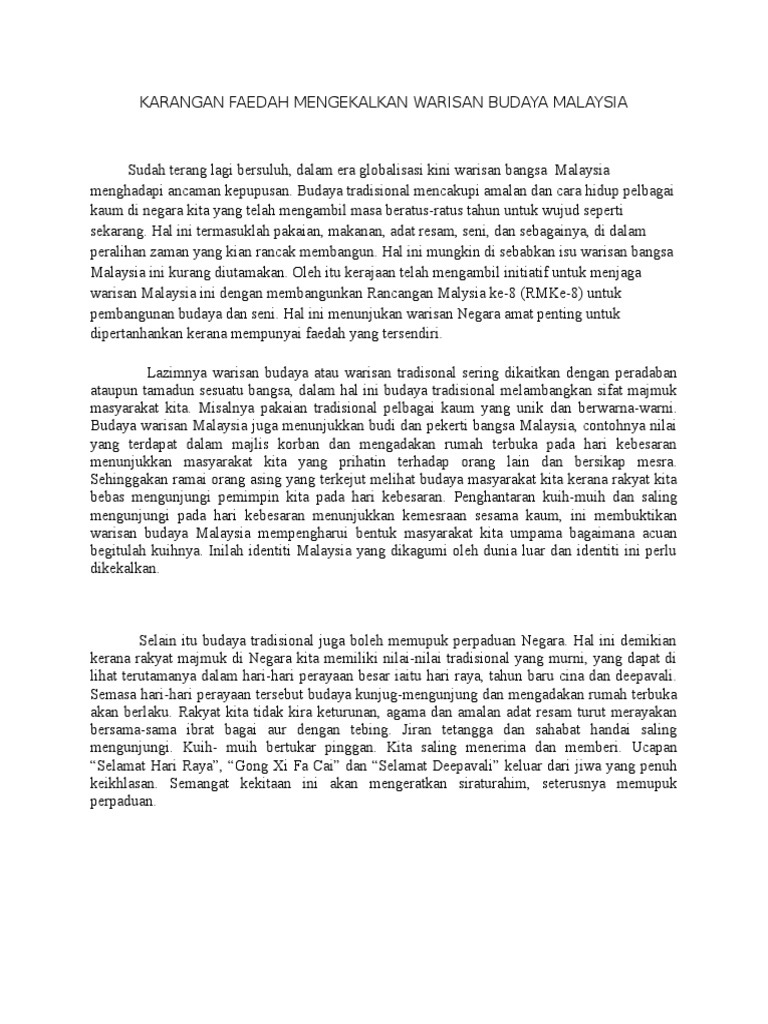 Karangan Faedah Mengekalkan Warisan Budaya Malaysia Pdf